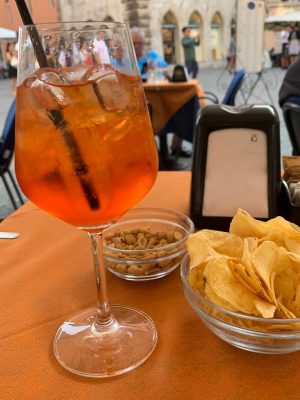 La hora del aperitivo es una de las más importantes en el día a día de los italianos, parece como si el mundo se parase para que amigos y compañeros de trabajo se reúnan en los bares a relajarse y deleitarse con esta bebida refrescante color naranja llamada Aperol Spritz, la cual esta elaborada con: naranja amarga, ruibarbo, gentiana, cinchona y vino espumante ya sea champaña o Prosecco. El Spritz es el aperitivo por excelencia en el gusto de los Italianos, siendo esta una bebida alcohólica de baja graduación. El gusto por su consumo traspasa las fronteras de su región de origen y de Italia.